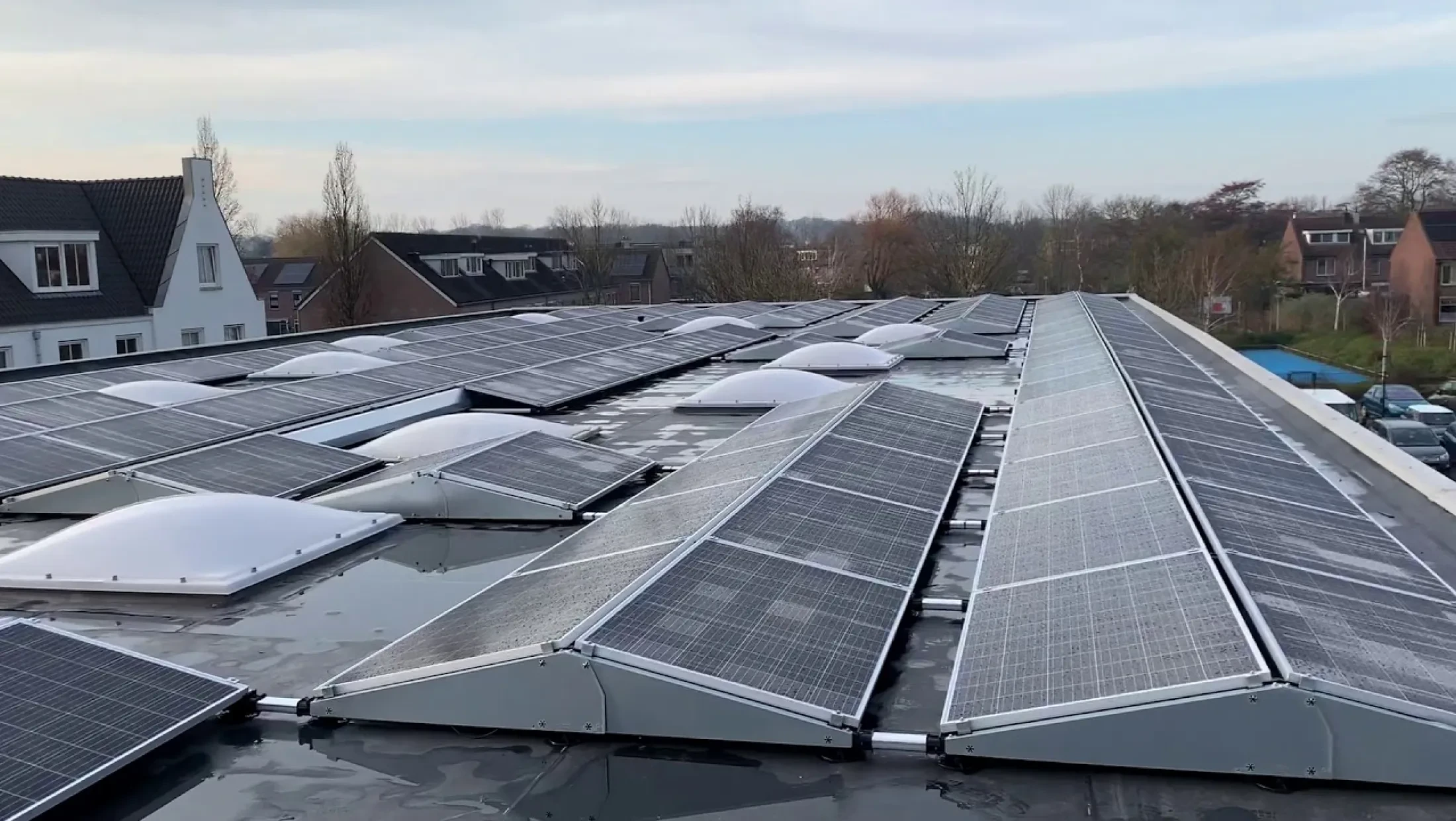 Met het plaatsen van 230 zonnepanelen op het platte dak van ons pand wekken we voldoende stroom op om zelfvoorzienend te zijn. Het mes snijdt hier aan twee kanten; enerzijds is het gebruik van zonne-energie minder slecht voor het milieu, en anderzijds kunnen we de ruimte op het platte dak economisch inzetten.